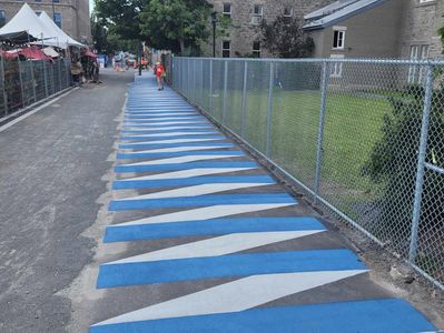 Notre équipe réalise des logos, motifs décoratifs et signalisation créative qui ajoutent couleur, identité et sécurité à vos espaces publics, tout en respectant les normes municipales et environnementales.